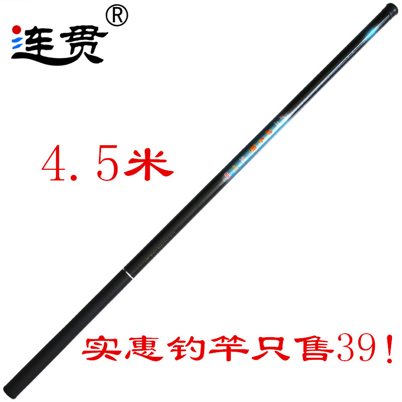 4.5米普碳连贯品牌鱼竿超轻超硬超细鱼竿套装全套特价手竿台钓黑坑鱼杆包邮