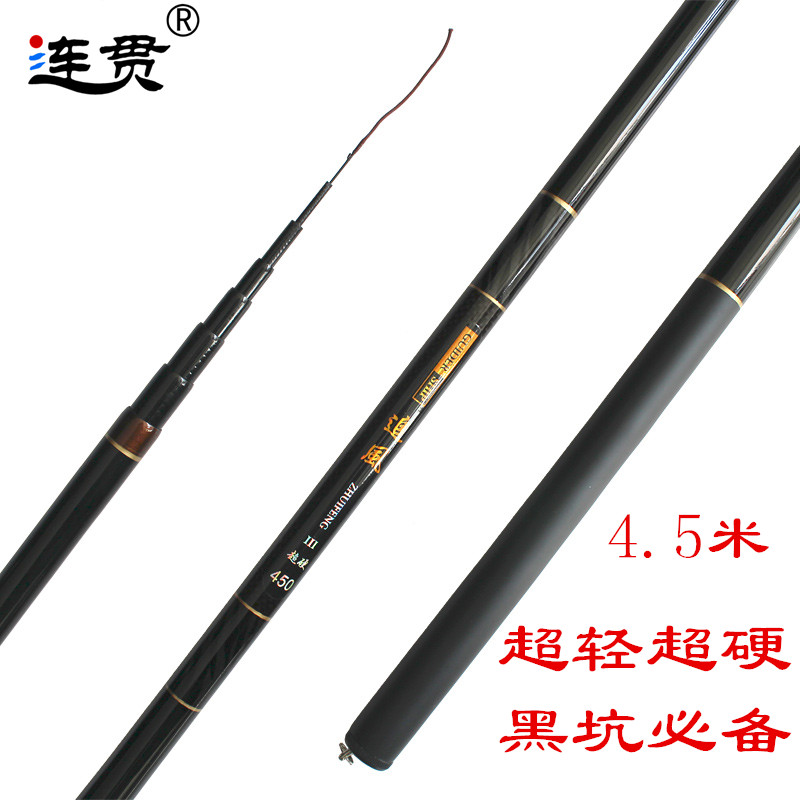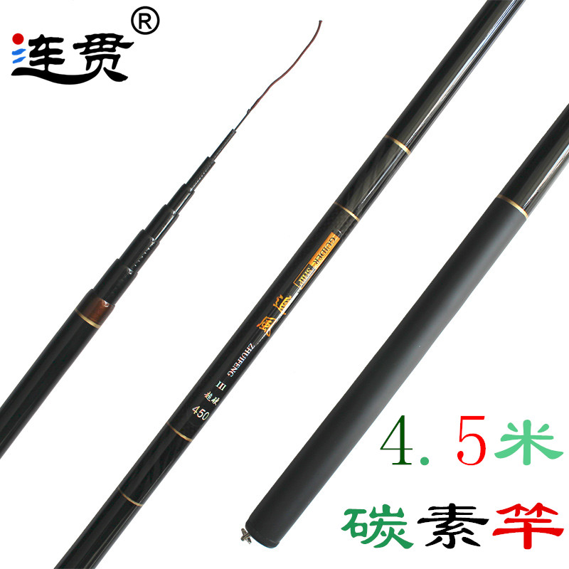 4.5米普碳连贯品牌鱼竿超轻超硬超细鱼竿套装全套特价手竿台钓黑坑鱼杆包邮